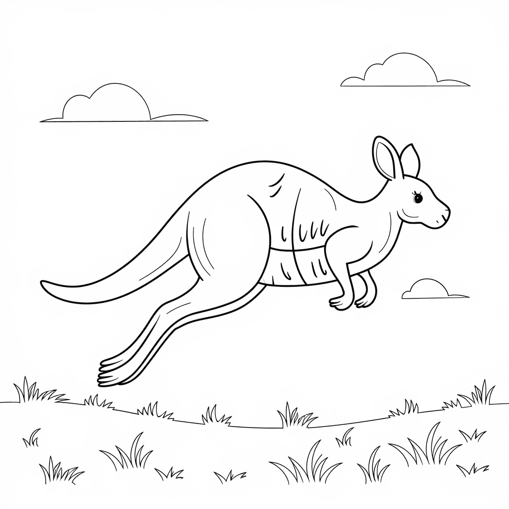 Kanguru dengan kantung di perutnya, melompat di padang rumput Australia.