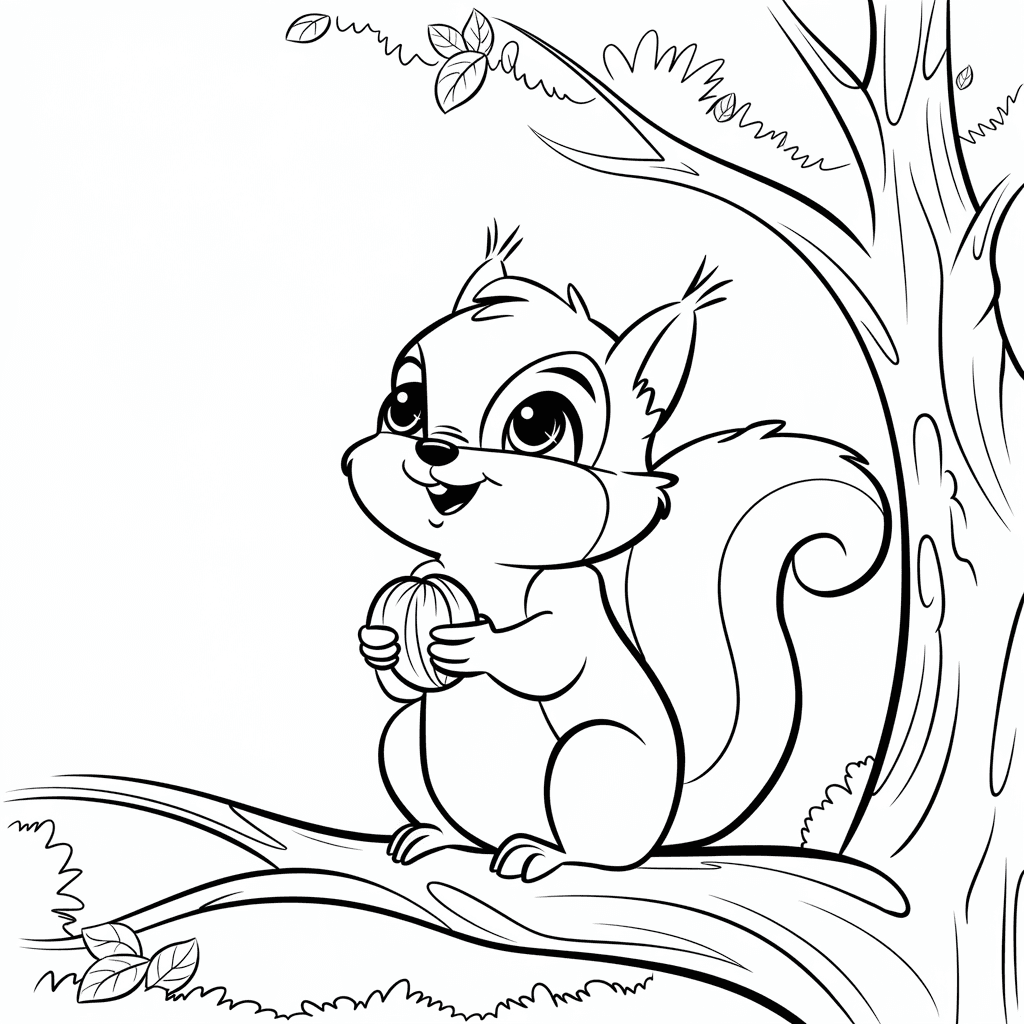 Tupai kecil memegang kacang, duduk di atas cabang pohon.