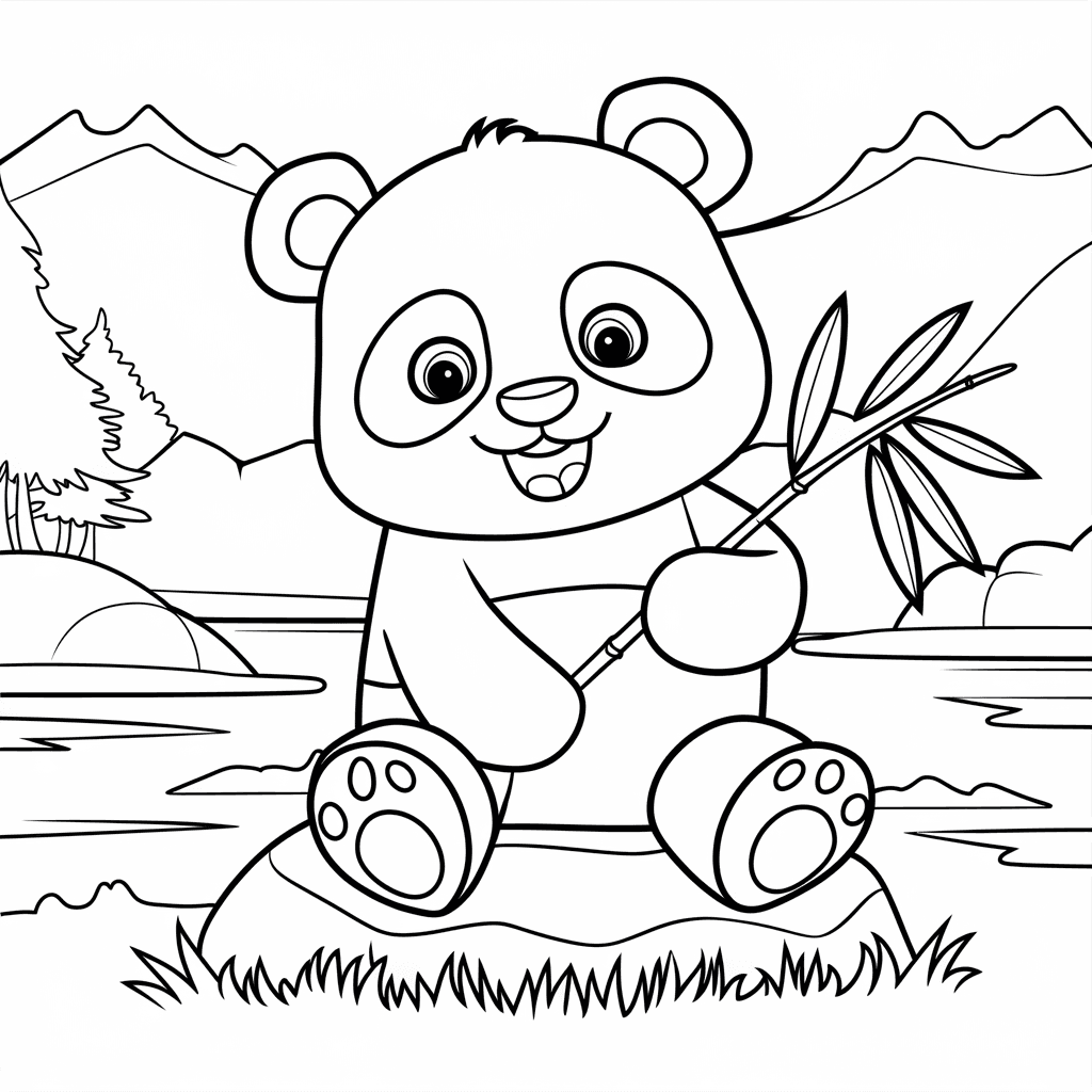 Panda sedang duduk sambil memegang batang bambu, siap untuk makan.