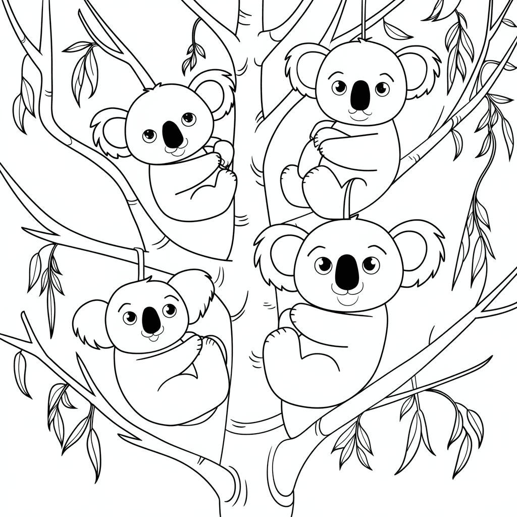Koala yang menggemaskan, bergelantungan di dahan pohon eukaliptus.