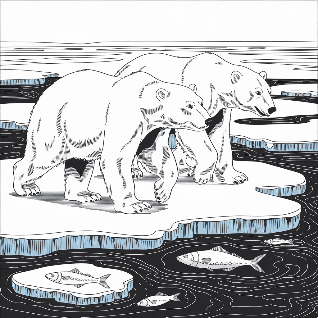 Beruang kutub berjalan di atas es, mencari ikan di lautan beku.