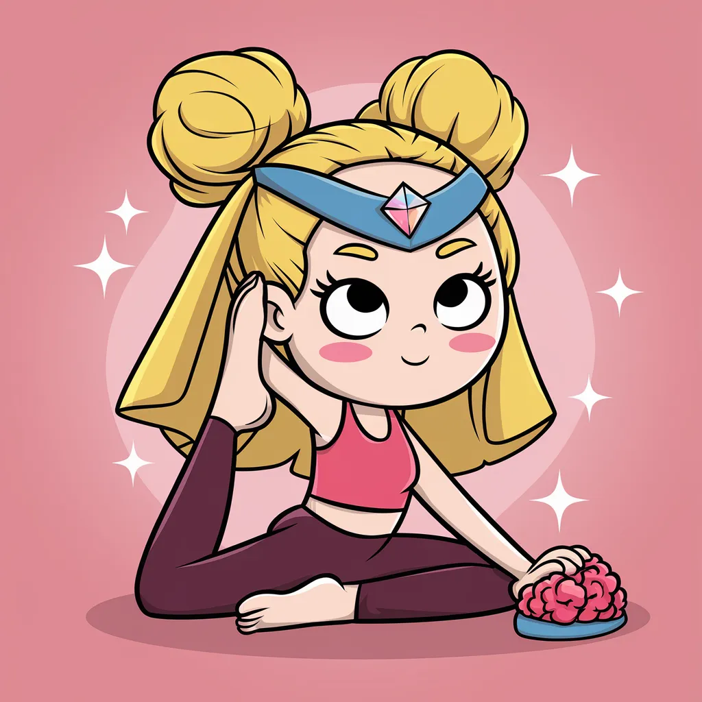 Ciptakan gambar berlian yang sedang melakukan pose yoga seperti lotus atau downward dog, menciptakan kesan tenang dan seimbang.