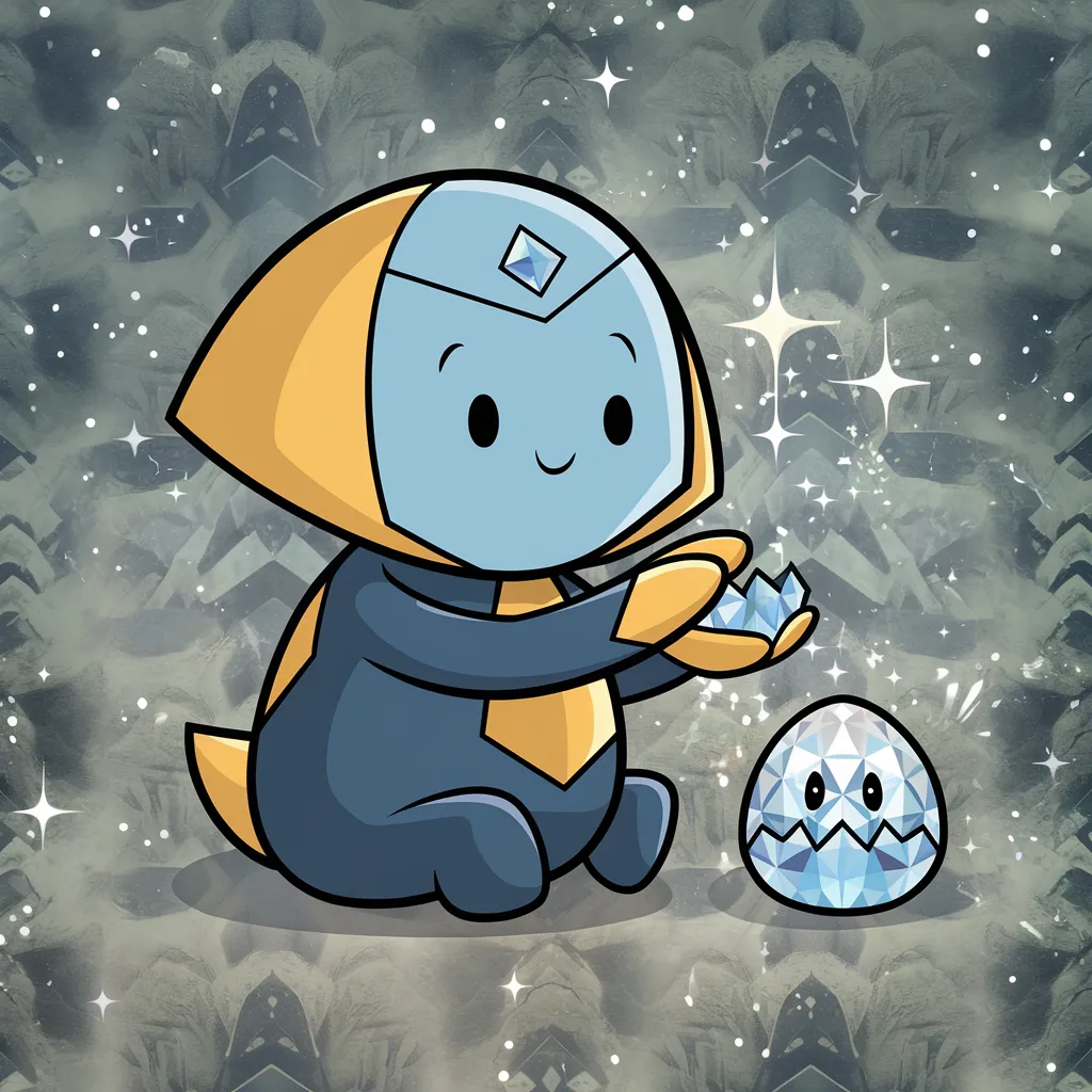 Ciptakan gambar berlian yang sedang mengeram telur kecil di bawahnya, memberikan sentuhan hangat dan lucu pada ilustrasi.