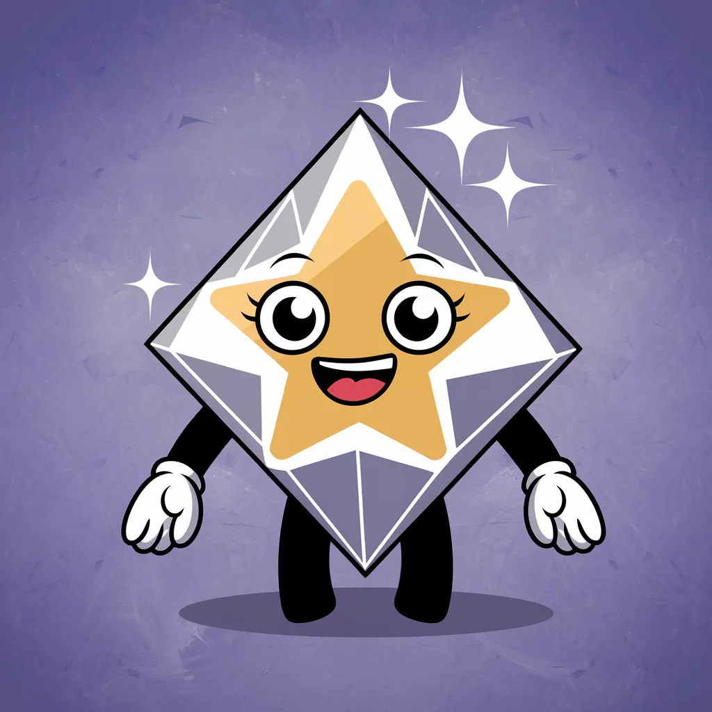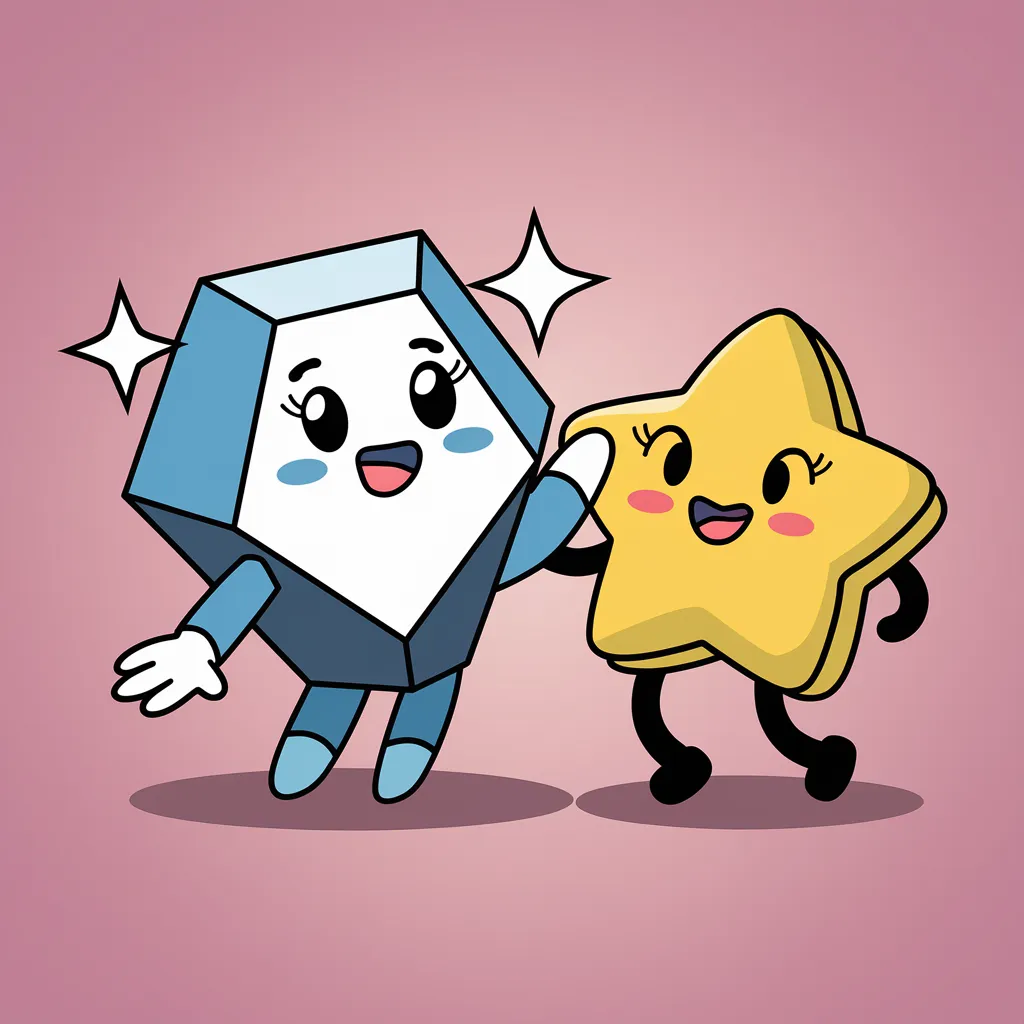 Gambarkan berlian yang sedang berinteraksi dengan karakter kartun lain seperti bintang atau bulan, menunjukkan hubungan persahabatan yang lucu.