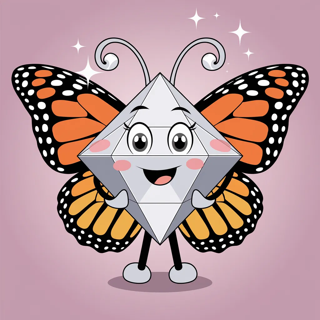 Ciptakan berlian yang memiliki sayap kupu-kupu, memberikan sentuhan fantasi dan keanggunan pada karakter.