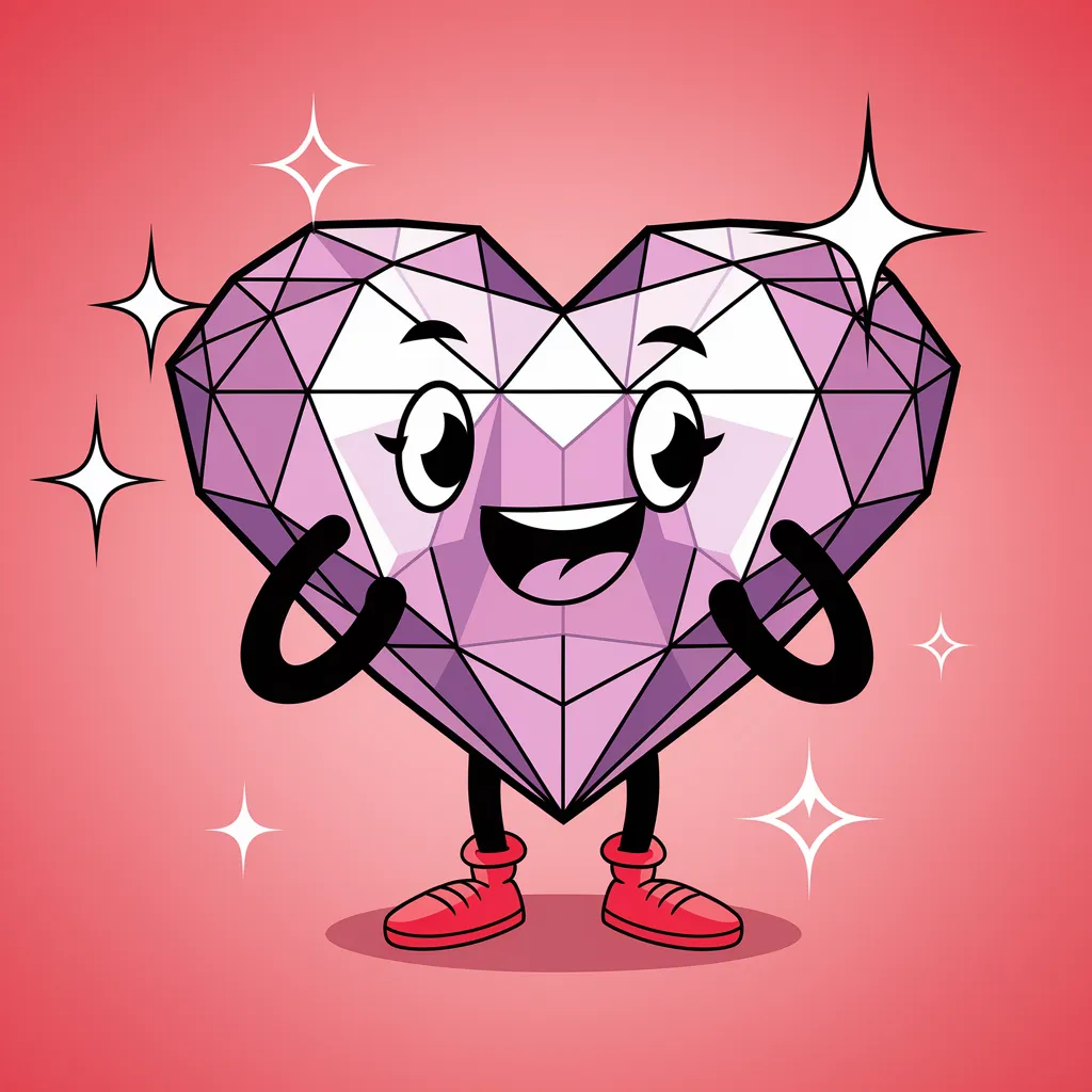 Ilustrasikan berlian yang membentuk simbol hati, melambangkan cinta dan kasih sayang.
