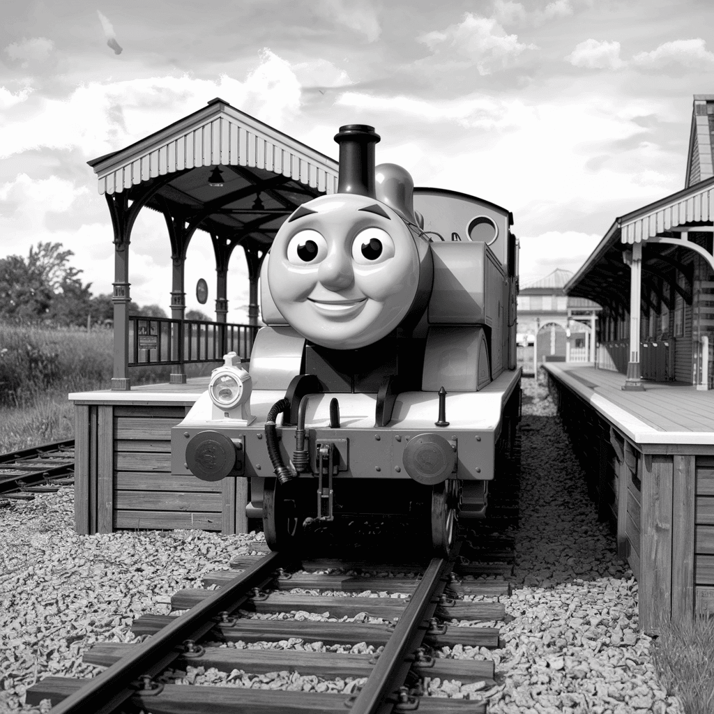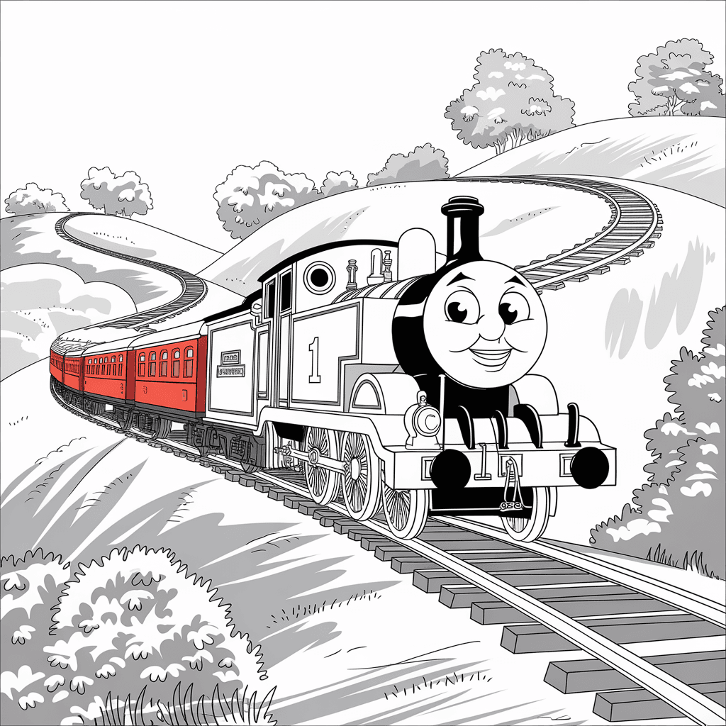 Gambar kartun Thomas hitam putih ini menghadirkan berbagai situasi dari dunia rel kereta yang tenang, damai, dan penuh kehangatan. Dalam format hitam putih, anak-anak dapat leluasa memberi sentuhan warna sesuka hati, atau sekadar menikmati kemudahan garis yang memudahkan belajar menggambar. Setiap gambar adalah bagian dari petualangan Thomas sang lokomotif biru, yang menyiratkan semangat positif, keberanian, serta keceriaan dalam setiap perjalanan.