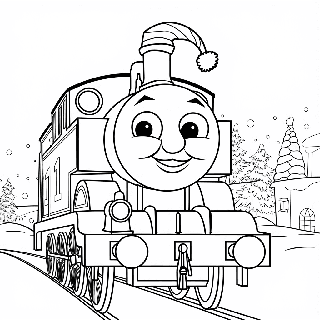 Gambar Thomas seolah mengenakan topi pesta di cerobongnya (detail kartun lucu), menambah keceriaan.