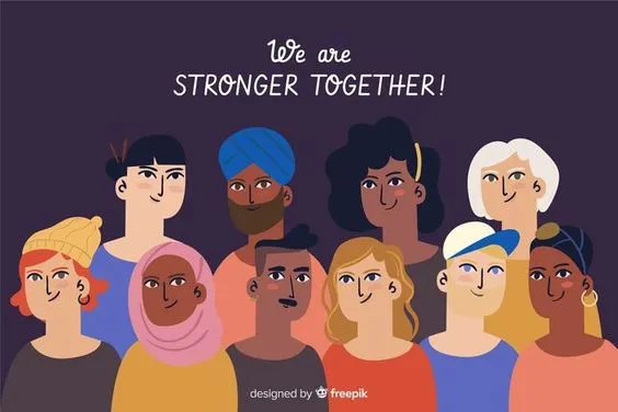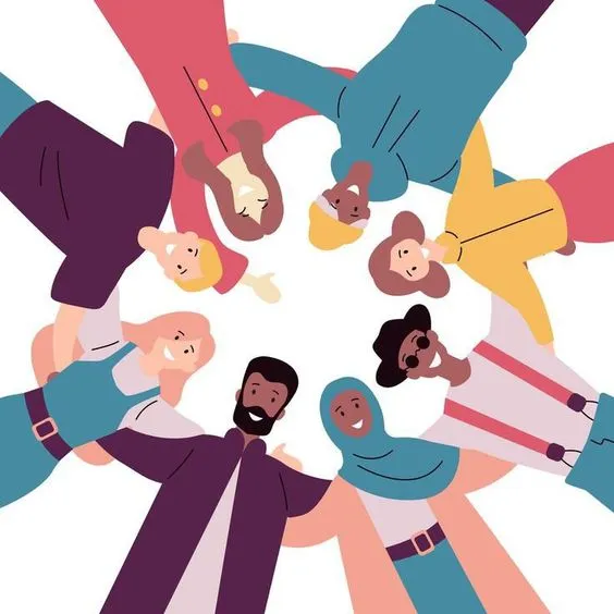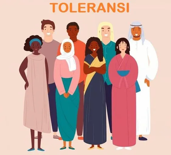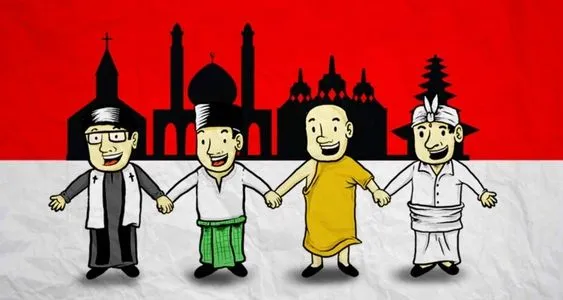 Tokoh-tokoh dalam gambar ini mungkin mewakili berbagai agama, seperti Islam, Kristen, Hindu, Buddha, dan lainnya. Mereka semua tersenyum lebar dan saling bergandeng tangan, menunjukkan keramahan dan saling menghormati. Mereka hidup berdampingan dengan damai, menghargai perbedaan satu sama lain, dan tidak ada ruang bagi konflik atau ketegangan.