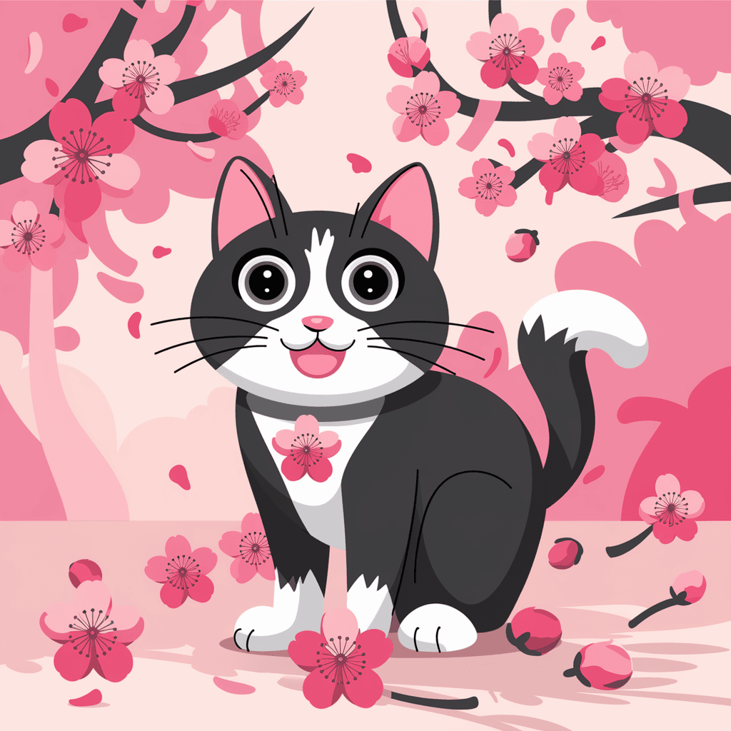 27. Kucing dengan Aksen Bunga Sakura