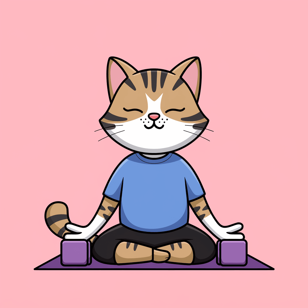 Ilustrasi kucing yang sedang melakukan pose yoga, menciptakan kesan nyaman dan keseimbangan.