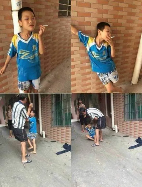 Adapun pada gambar diatas gambar lucu anak laki-laki yang sok jagoan merokok namun ketauan bapaknya, sehingga dirinya mendapatkan pukulan kasih sayang dengan menggunakan rotan. Namun tindakan bapak diatas tak patut untuk dicontoh ya.