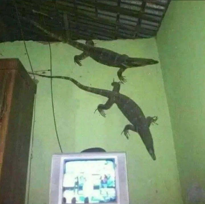 Kesan tampilan gambar tersebut adalah lucu dan menghibur. Saat melihat dua ekor biawak yang sedang merayap di dinding rumah warga dalam bentuk gambar yang lucu, hal itu bisa membuat orang tersenyum dan tertawa. Keberadaan biawak yang tidak biasa di tempat yang tidak lazim, seperti di dinding rumah, menciptakan kontras yang menggelitik dan humor. Gambar tersebut mungkin juga menggambarkan situasi yang tidak terduga dan memberikan kesan kejutan. Keseluruhan, gambar tersebut dapat menghadirkan momen lucu dan menghibur bagi yang melihatnya.