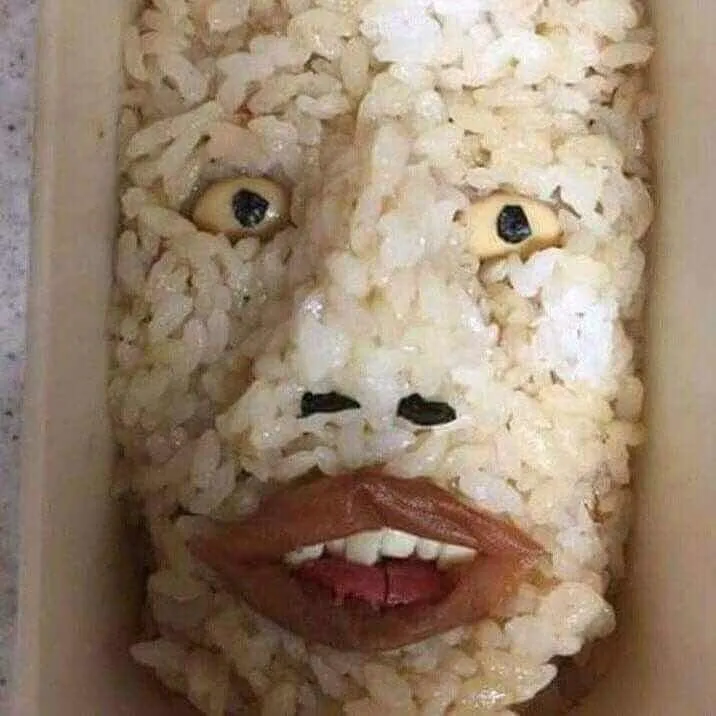 Kesan lucu dan menghibur muncul karena perbedaan antara ekspektasi (ayam) dan realitas (nasi yang dibentuk seperti ayam). Gambar tersebut memanfaatkan unsur kejutan dan permainan visual untuk menghasilkan efek humor yang menggelitik. Gambar ini bisa menjadi sumber kegembiraan dan kesenangan dalam menyajikan makanan dengan cara yang unik dan mengundang tawa. Hal ini juga menunjukkan kreativitas dalam mengolah makanan dan memberikan sentuhan humor dalam presentasi yang tidak biasa.
