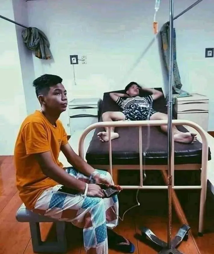 Kesan tampilan gambar lucu seorang teman yang menjenguk temannya yang dirumah sakit, namun malah tidur di atas kasur rumah sakit sementara temannya yang sakit duduk di kursi sambil diinfus, adalah situasi yang menciptakan kejutan dan kekonyolan. Gambar ini dapat menggambarkan sifat humor dan keceriaan dalam persahabatan, di mana teman yang berkunjung mungkin terlalu nyaman hingga akhirnya tertidur di atas kasur rumah sakit.