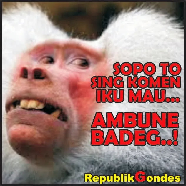 Gambar seekor monyet lengkap dengan tulisan Jawa “Sopo to sing komen iki mau ambune badeg?” menggambarkan situasi yang mengundang gelak tawa dan menghibur. Kutipan dalam bahasa Jawa tersebut dapat diartikan sebagai “Siapa yang memberi komentar ini, mungkin ambil angin berat?” dengan bahasa yang kocak dan menghibur.