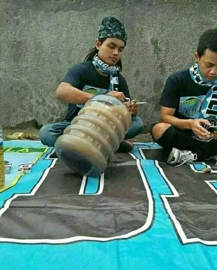 Sebuah gambar lucu yang menggambarkan dua orang pria duduk santai sambil minum, namun kelucuan ada pada cara mereka mengambil minuman dari galon air yang besar. Mungkin mereka menggunakan cara unik dan kreatif, seperti mengangkat galon air besar dengan tangannya atau menggunakannya sebagai “botol” besar untuk minuman mereka. Kesan lucu dari gambar ini datang dari kontras antara cara tidak biasa mereka mengambil minuman dengan situasi santai dan nyaman yang mereka nikmati.