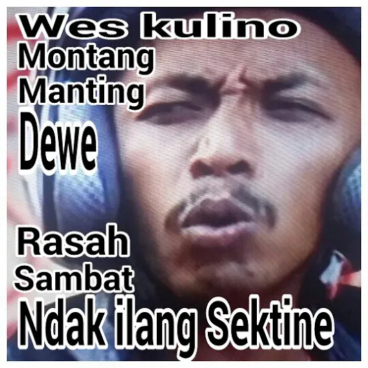 Gambaran seorang pria dengan wajah yang menunjukkan kekhawatiran dan kecemasan terhadap sesuatu yang tidak diinginkan, disertai dengan kutipan tulisan bahasa Jawa “wes kulino montang manting, dewe rasah sambat, ndak ilang sektine.” Kutipan tersebut memiliki arti “sudah kulino berbagai cara, sudah sendiri rasakan, tidak hilang begitu saja.” Kesan dari gambar ini adalah bahwa pria tersebut sedang menghadapi situasi yang sulit atau masalah yang rumit, dan dia merasa khawatir dan cemas terhadap hasilnya. Dia telah mencoba berbagai cara untuk mengatasi masalah tersebut, namun tampaknya masih sulit untuk menemukan solusinya.