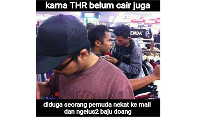 Seorang pria menerima THR dalam bentuk voucher belanja. Ketika dia pergi ke toko untuk menggunakan voucher tersebut, dia menyadari bahwa toko tersebut telah ditutup. Dia berkata, “Apakah ini maksudnya THR-nya adalah Take Home Ruined (Pulang dengan Harapan Hancur)?”