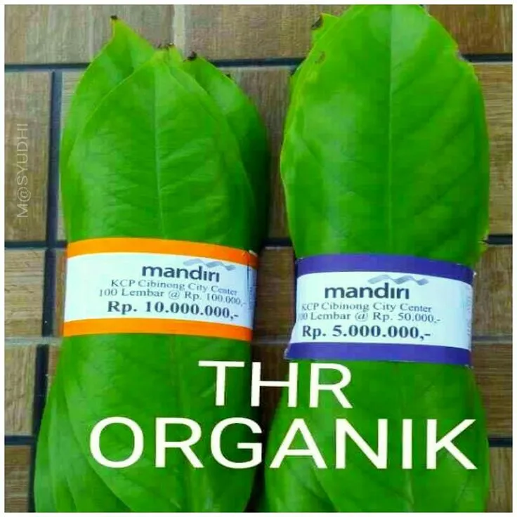 Seorang ayah memberikan THR kepada anaknya yang masih bayi. Ketika anaknya mencoba memegang uang itu, ayahnya berkata, “Hati-hati, itu adalah Time to Have Really sticky fingers (Waktu untuk Memiliki Jari yang Sangat Lengket)!”