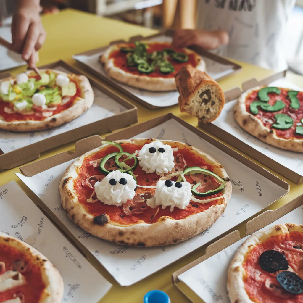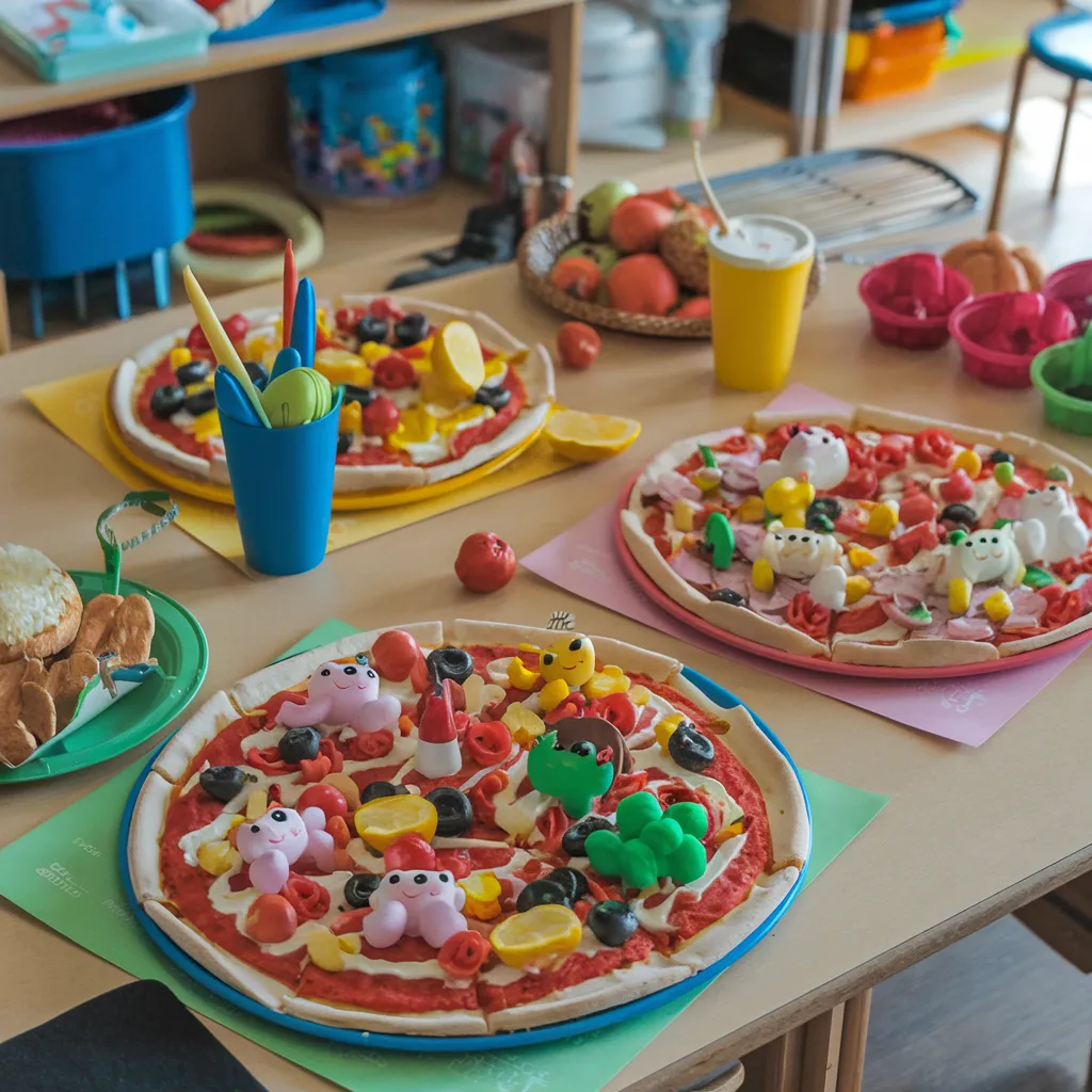 Gambarkan pizza mini dengan toping seperti smiley face, hati, atau bintang, membuatnya lebih menarik dan menyenangkan untuk anak-anak.