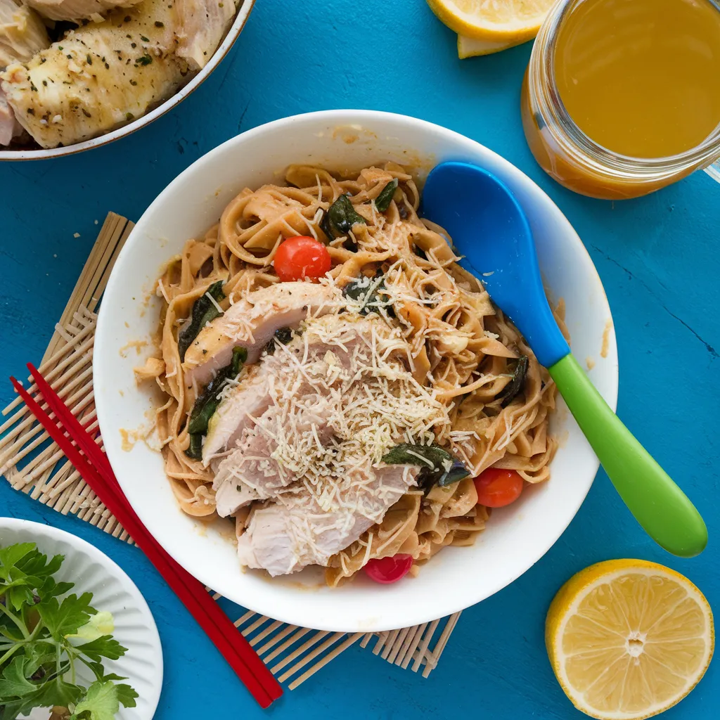 Tambahkan taburan keju di atas mie ayam, menciptakan tampilan yang lezat dan menggugah selera anak-anak.