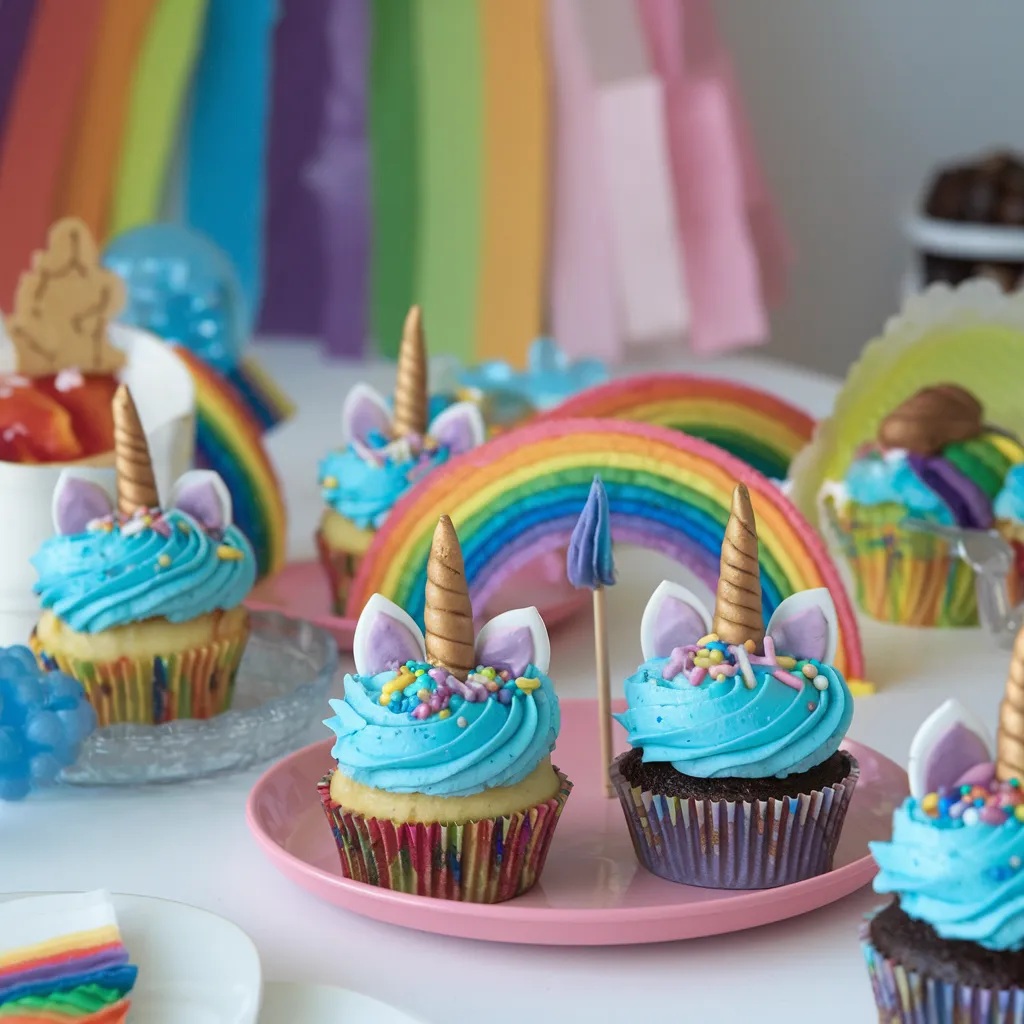 25. Cupcake Unicorn dengan Hiasan Pelangi