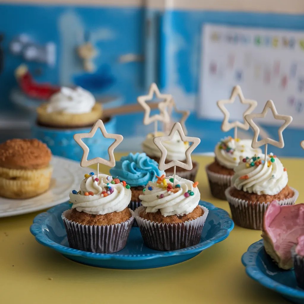 Tambahkan hiasan bintang atau bentuk lucu lainnya pada cupcake, membuatnya terlihat lebih menarik dan penuh warna.