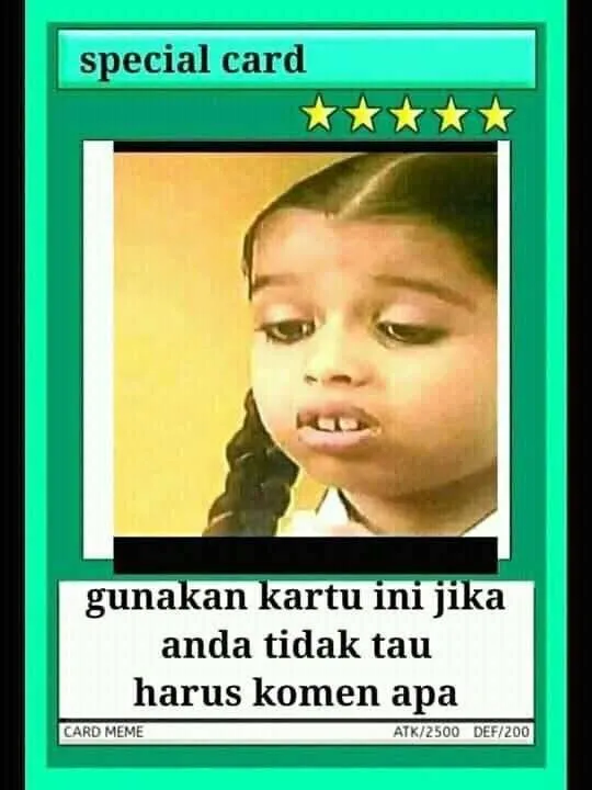 Kesan tampilan gambar tersebut adalah lucu, menggemaskan, dan mengundang gelak tawa. Kartu bertuliskan “special card, gunakan kartu ini jika anda tidak tau harus komen apa” menggambarkan situasi di mana seseorang tidak tahu harus memberikan komentar apa pada suatu hal. Gambar anak perempuan kecil yang terlihat lucu dan polos dengan wajah bingung menambahkan kesan lucu pada kartu tersebut. Anak perempuan kecil yang tampak kebingungan menggambarkan ekspresi lucu saat seseorang merasa tidak tahu harus merespon suatu situasi.