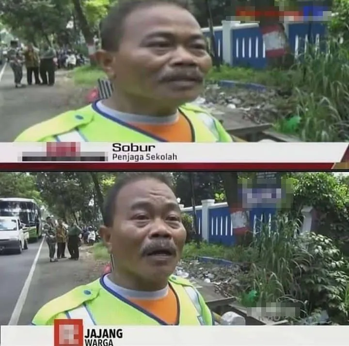 Kesan tampilan gambar tersebut adalah kocak dan mengundang tawa. Gambar ini menggambarkan situasi lucu di mana seorang bapak-bapak diwawancara dengan nama yang berbeda dalam setiap sesi. Pada sesi pertama, dia menyebut dirinya sebagai Sobur, penjaga sekolah, namun pada sesi berikutnya, dia mengaku bernama Jajang sebagai warga biasa.