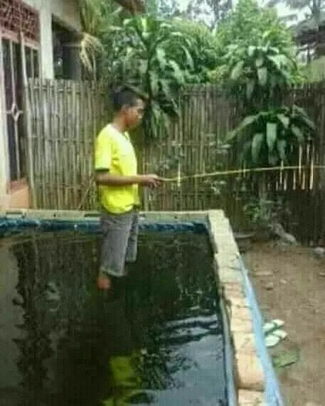 Dalam gambar tersebut, seseorang yang sedang berusaha memancing justru melakukan kesalahan dengan melemparkan mata kailnya ke halaman, yang tentu saja tidak akan berhasil menangkap ikan. Selain itu, lucunya lagi, orang tersebut tidak sadar bahwa dirinya berdiri di atas kolam, yang justru memperlihatkan bahwa dia mungkin kurang beruntung dalam memancing.