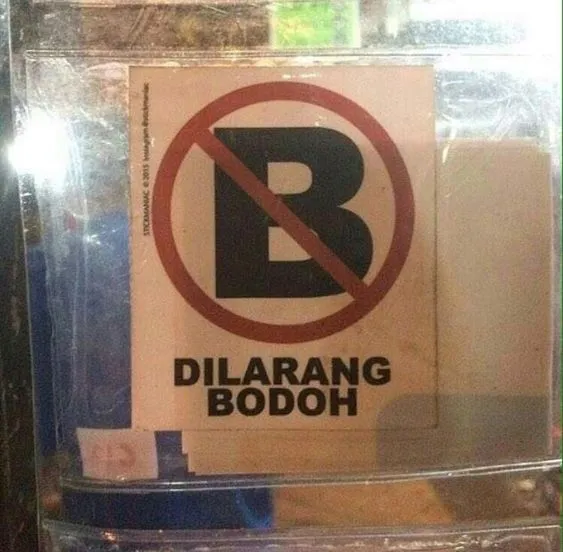 Kesan tampilan gambar meme tersebut adalah lucu, kreatif, dan menggelitik. Pamplet dengan simbol “hutuf b” dan strip merah, lengkap dengan tulisan “di larang bodoh”, menggambarkan pesan yang humoris dan mengundang tawa. Simbol “hutuf b” yang tidak jelas artinya dan strip merah sebagai tanda peringatan menambahkan kesan kocak pada meme tersebut. Tulisan “di larang bodoh” memberikan pesan humor yang tidak biasa, membuat orang tertawa karena sifatnya yang tidak biasa dan menggelitik. Meme ini mungkin bertujuan untuk menyampaikan pesan dengan gaya humor yang unik dan berbeda dari yang biasa. Dengan menggunakan simbol dan tulisan yang aneh dan tidak biasa, meme ini berhasil menarik perhatian dan mengundang tawa dari para pembacanya.