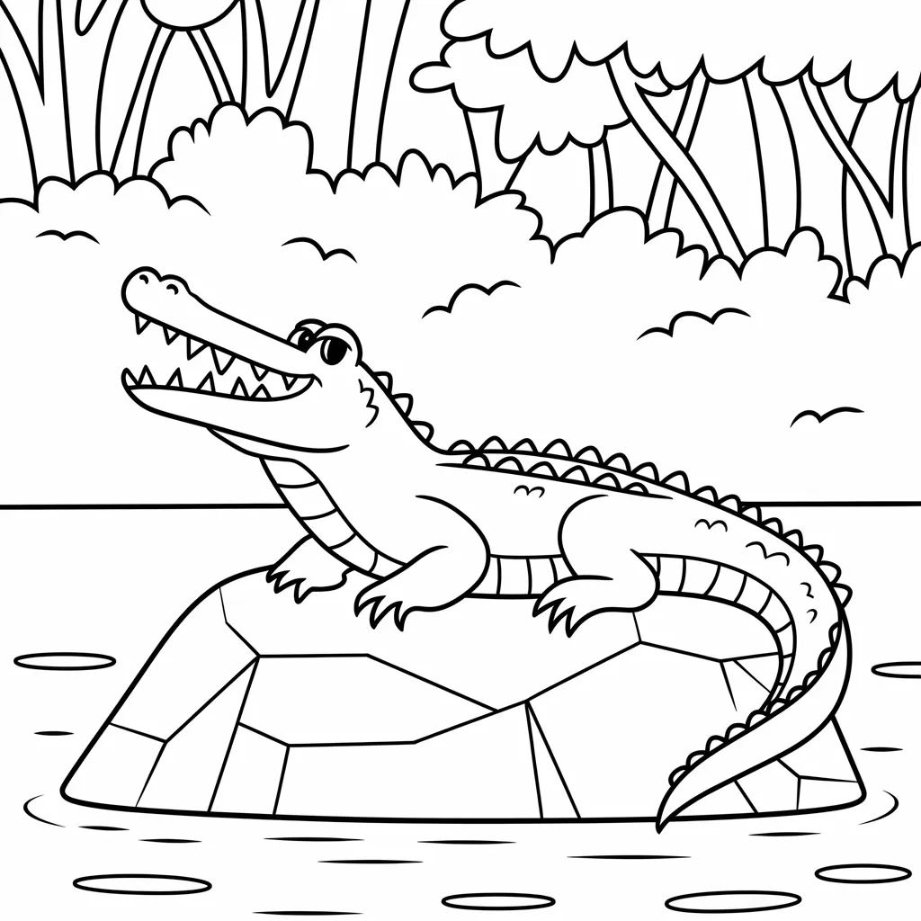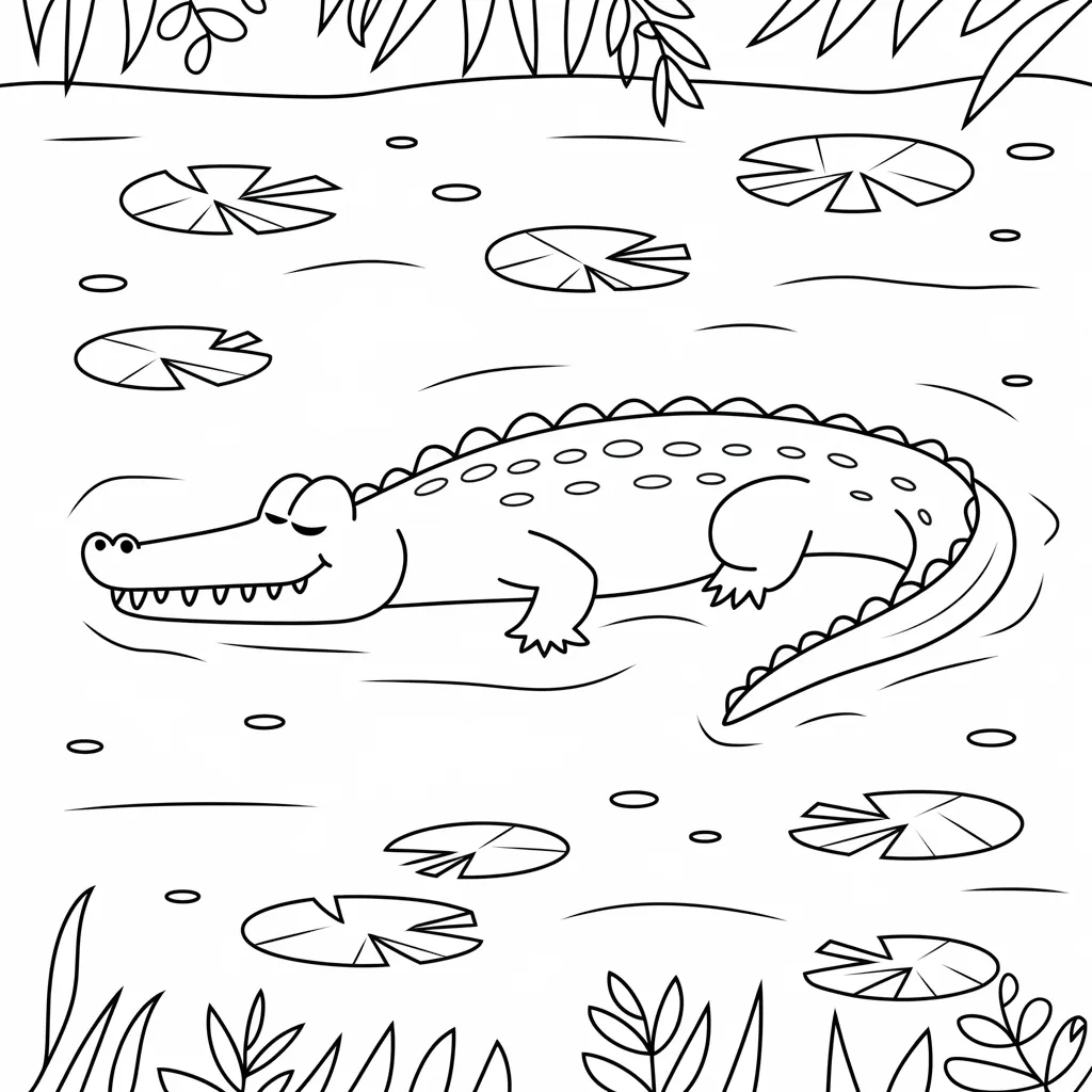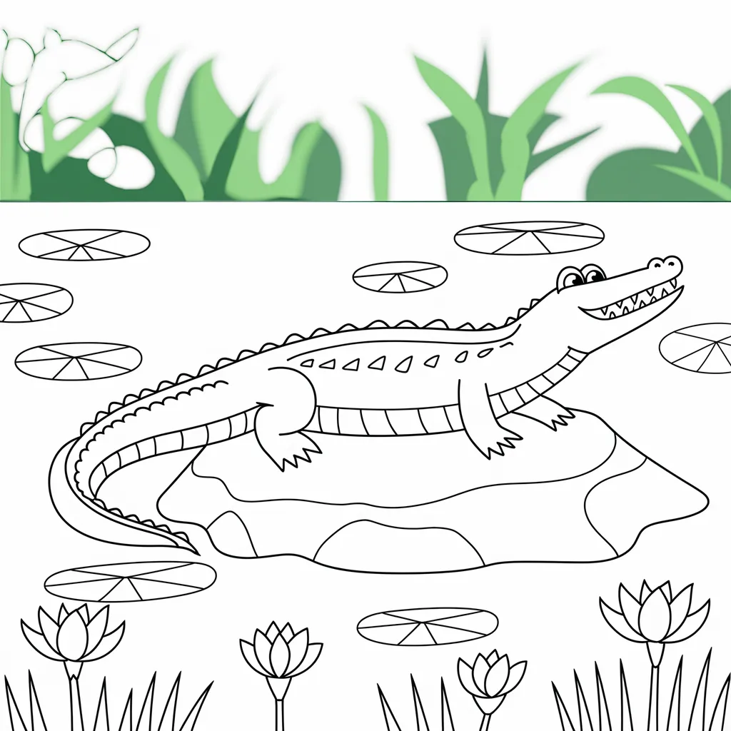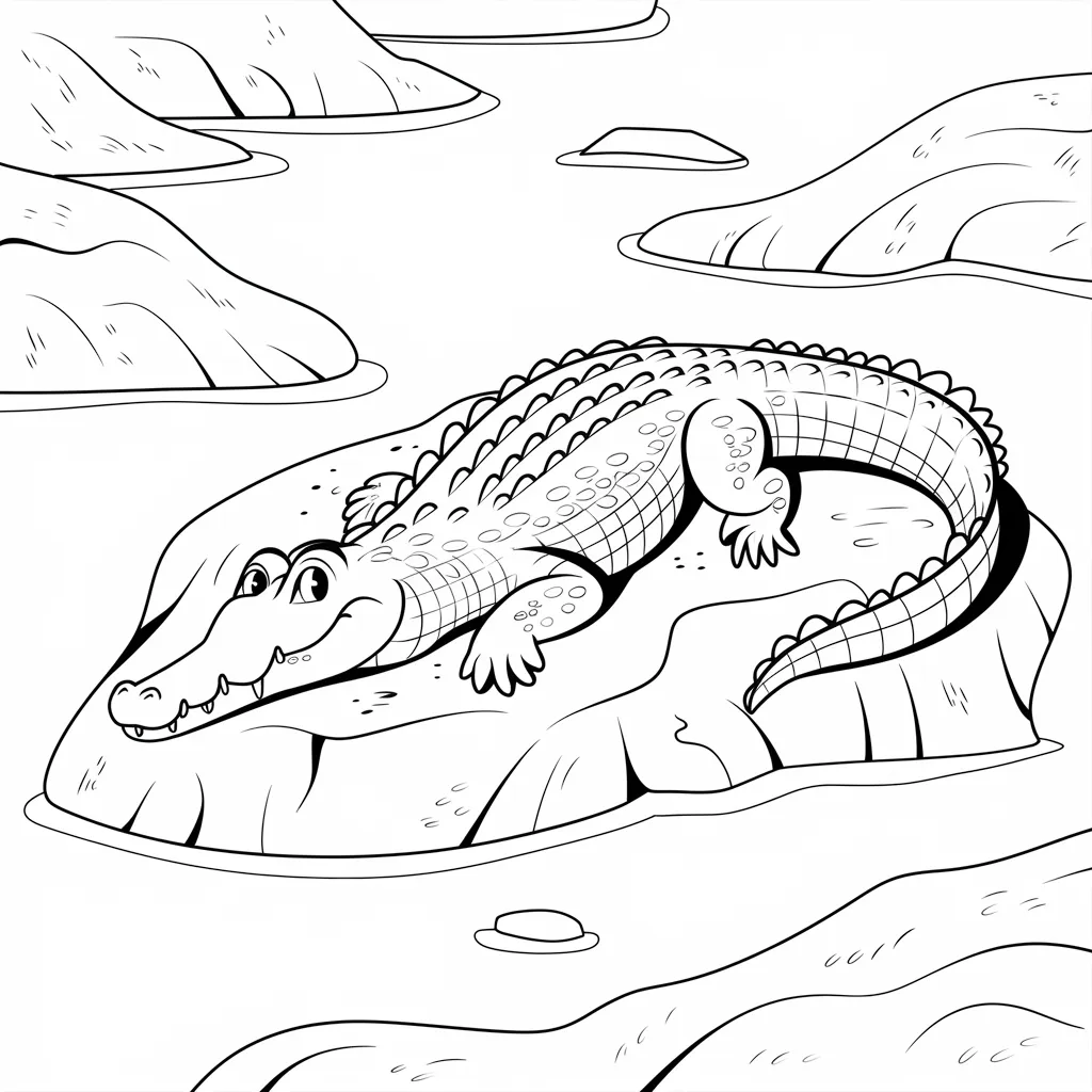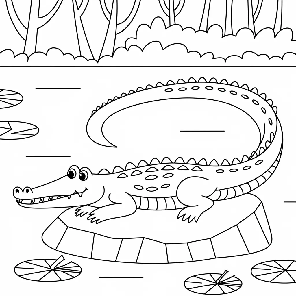 Ilustrasi yang menonjolkan detail sisik tebal di tubuh buaya, cocok untuk melatih ketelitian.