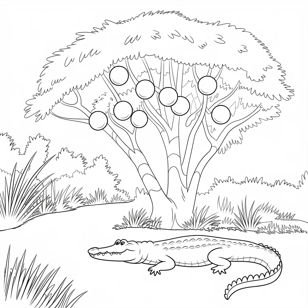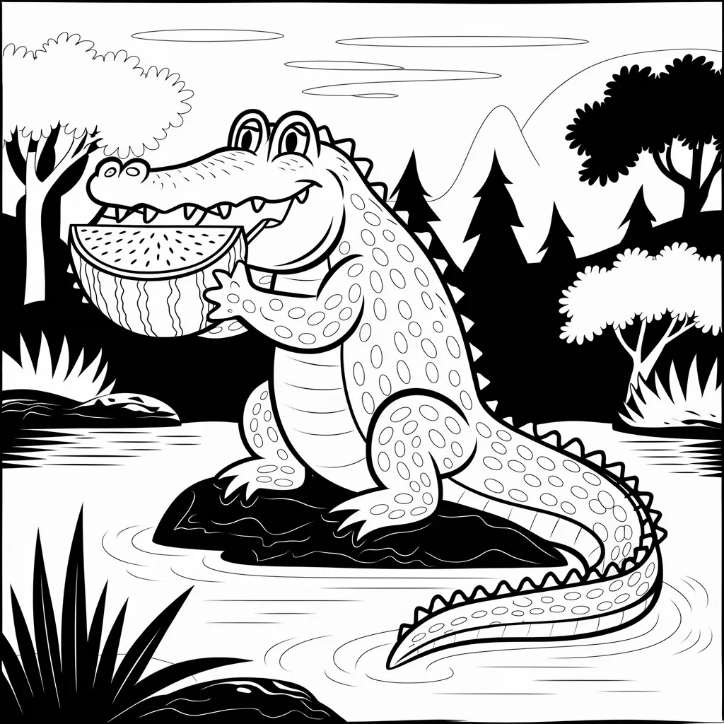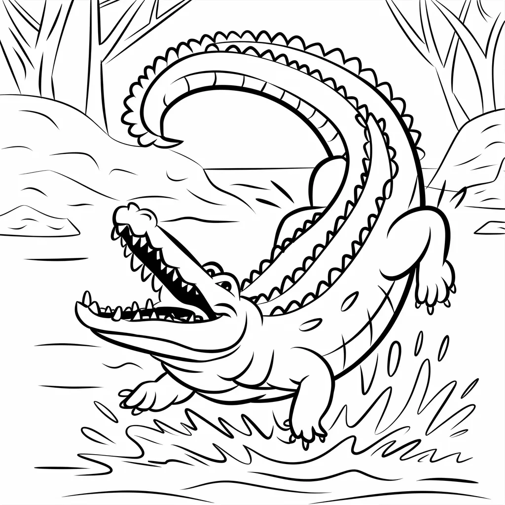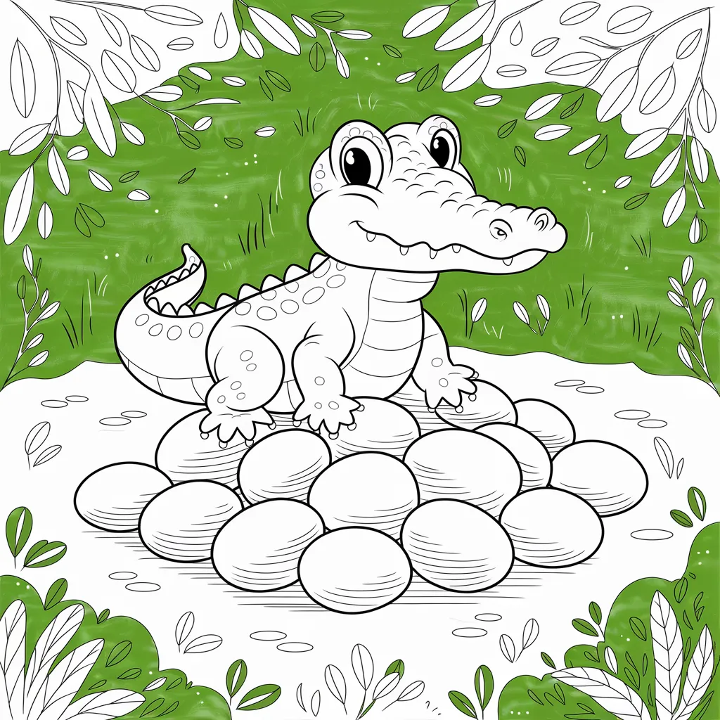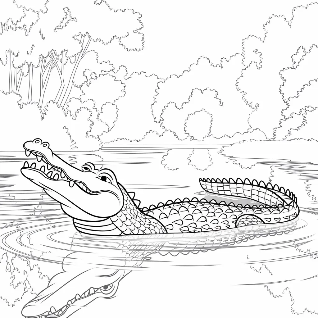 Ilustrasi yang menonjolkan detail sisik tebal di tubuh buaya, cocok untuk melatih ketelitian.