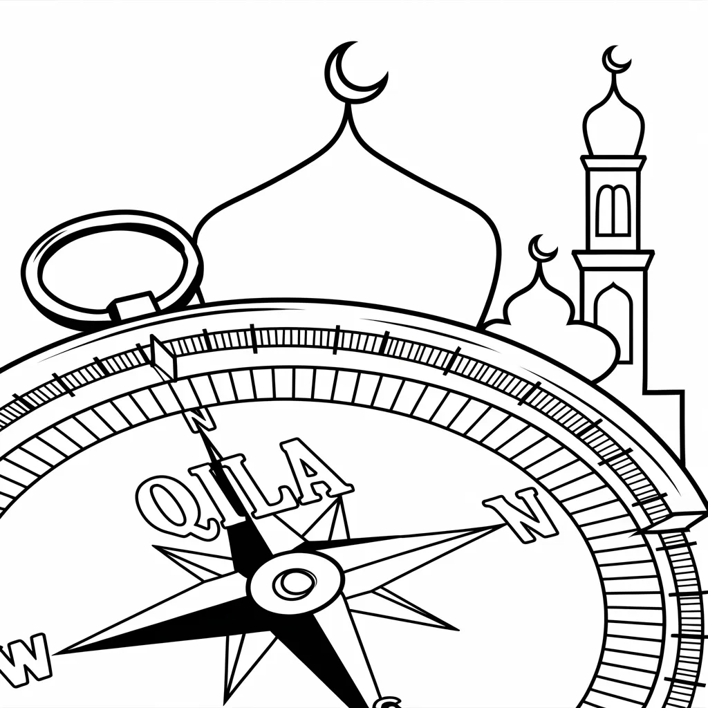 Gambar kompas yang menunjukkan arah kiblat untuk shalat.