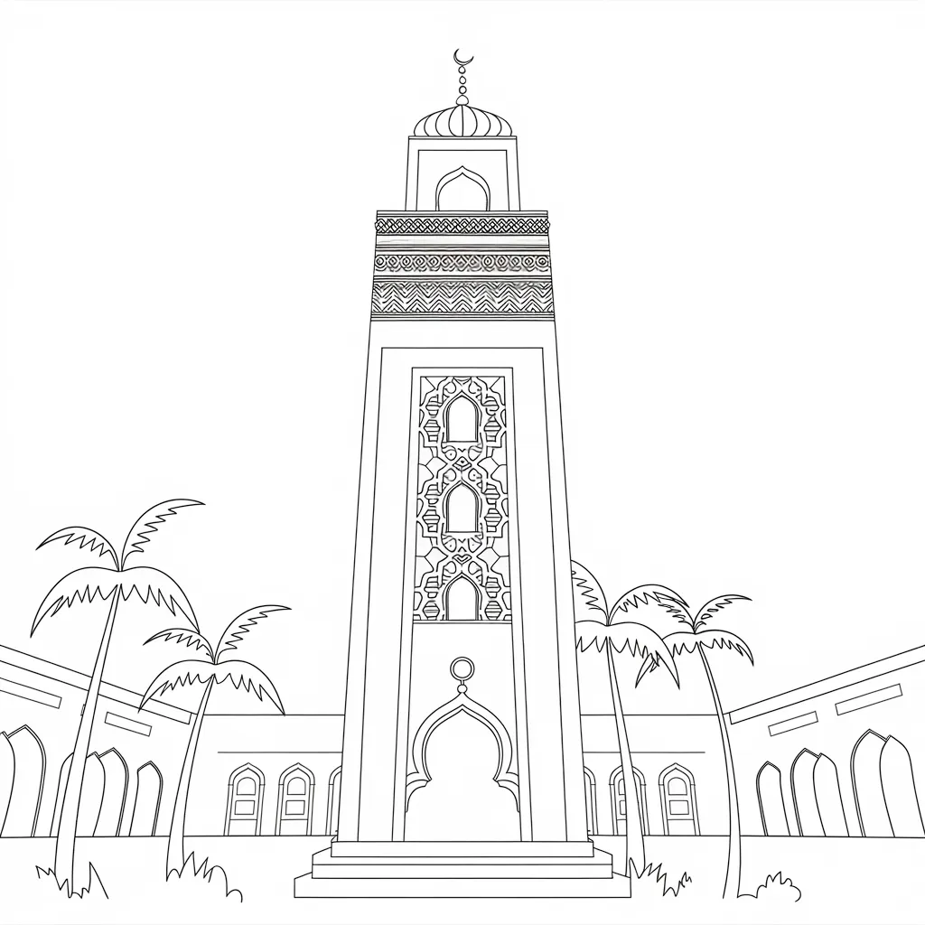 Menara masjid yang menjulang tinggi dengan detail arsitektur yang indah.