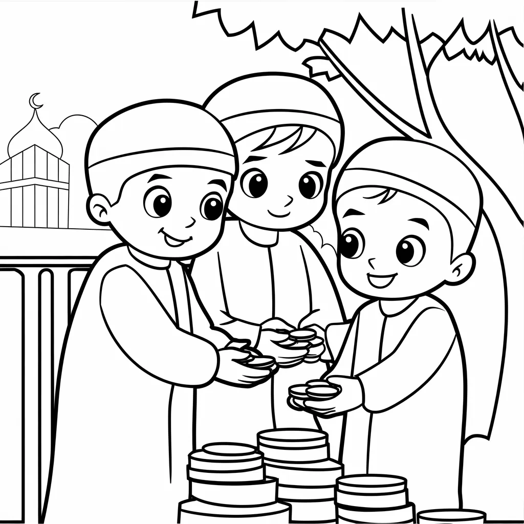 Ilustrasi anak-anak memberikan sedekah atau zakat kepada yang membutuhkan.