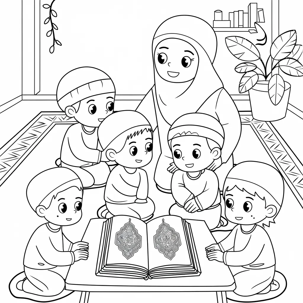 Gambar anak-anak yang sedang belajar membaca Al-Quran bersama guru.