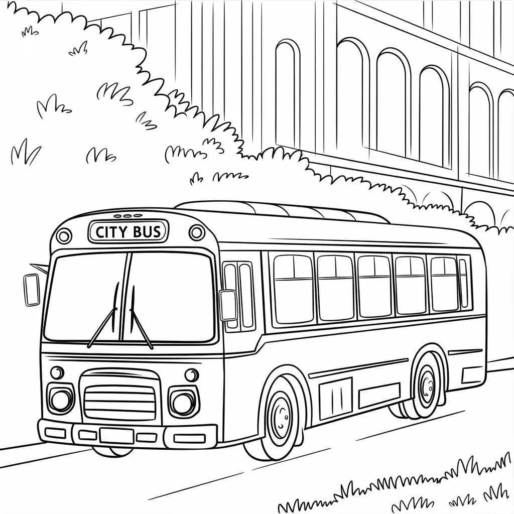 Gambar bus kota yang digunakan untuk transportasi umum, mengajarkan tentang mobilitas di perkotaan.