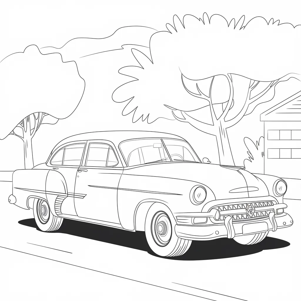 Gambar mobil sedan dengan desain klasik, cocok untuk mengenalkan anak pada mobil-mobil era sebelumnya.