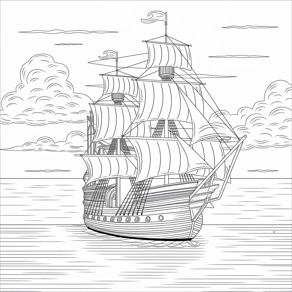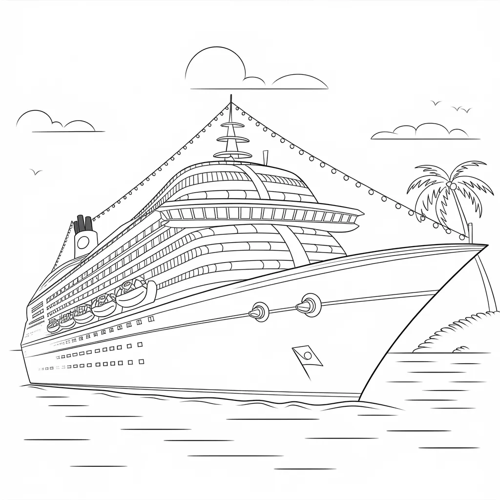 Ilustrasi kapal pesiar mewah, menambah kesan petualangan di laut.