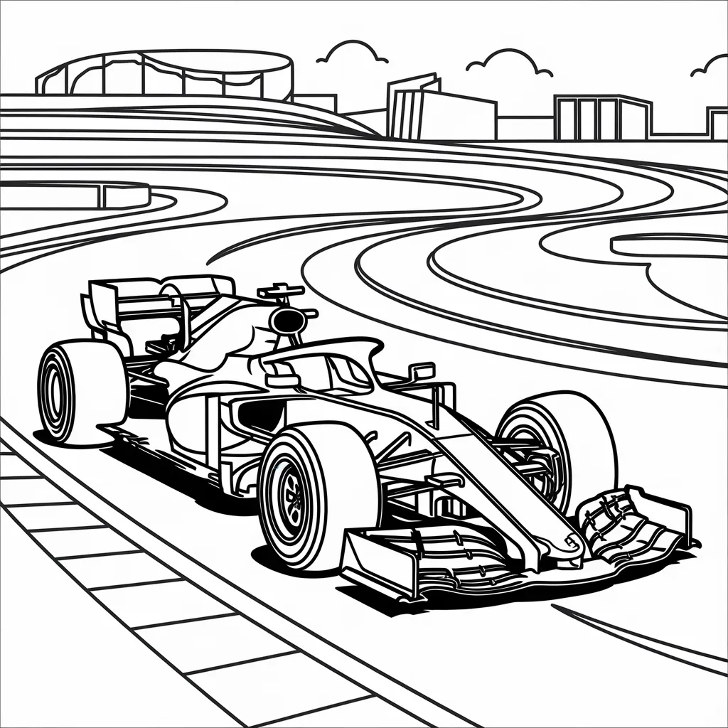 Ilustrasi mobil balap F1 dengan desain futuristik, menambah elemen kecepatan dan teknologi.