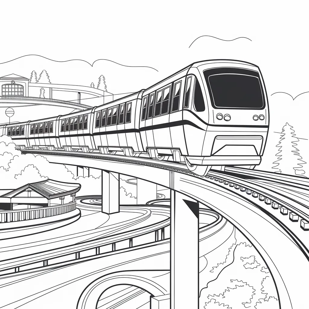 Gambar kereta monorel yang melayang di atas rel tunggal, mengenalkan transportasi modern.