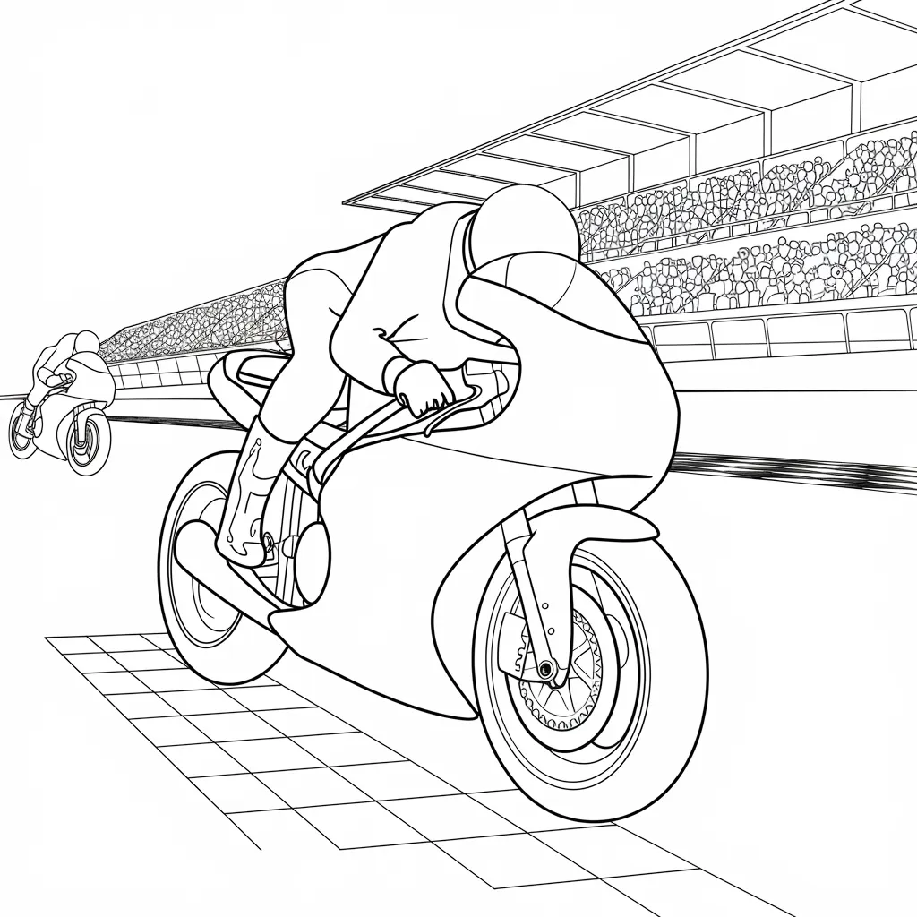 Ilustrasi motor balap dengan desain aerodinamis, menambah keseruan dalam mewarnai.