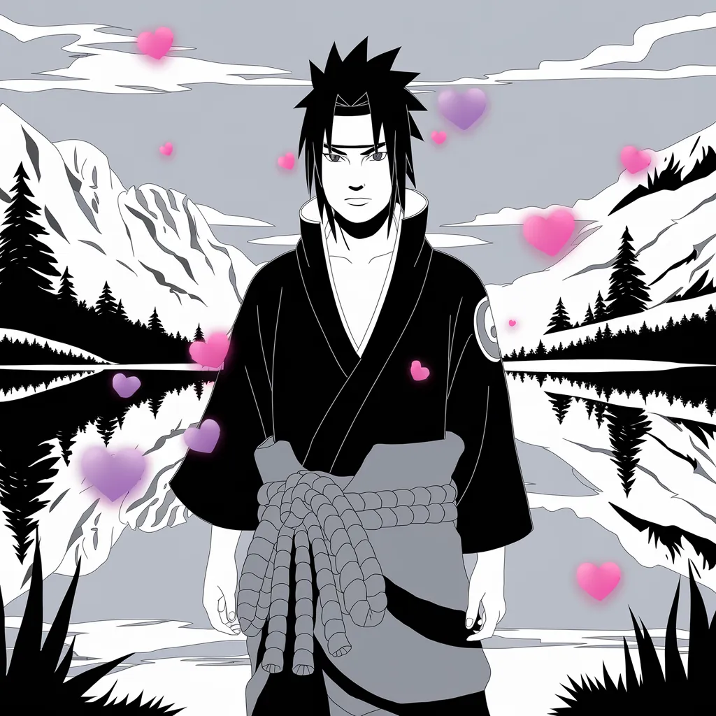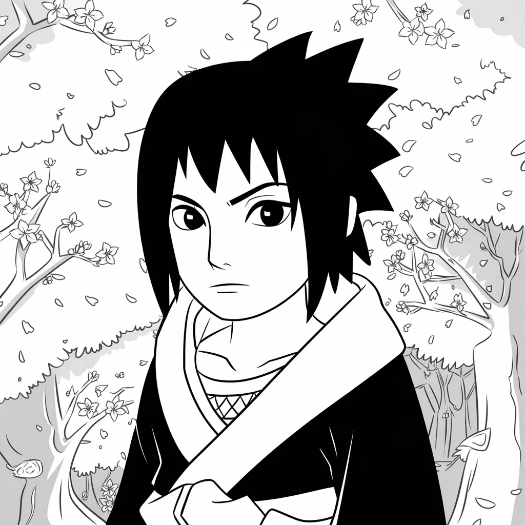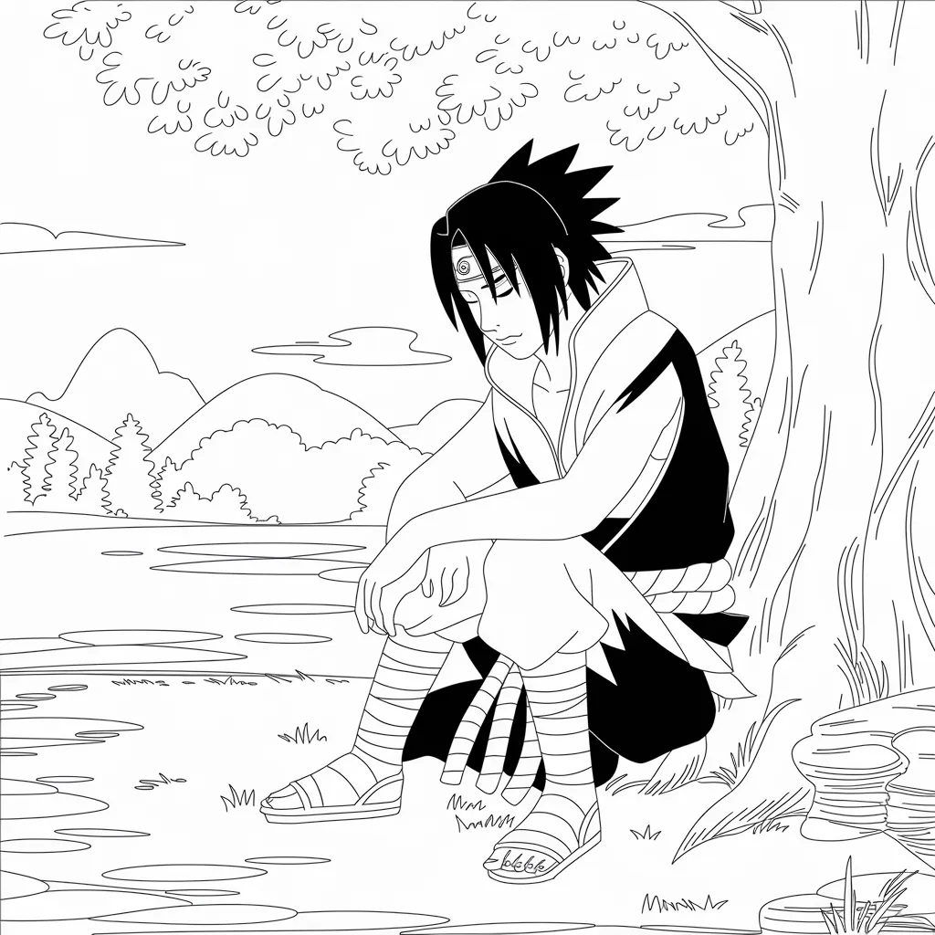 Sasuke merenung di bawah pohon sakura yang berbunga.