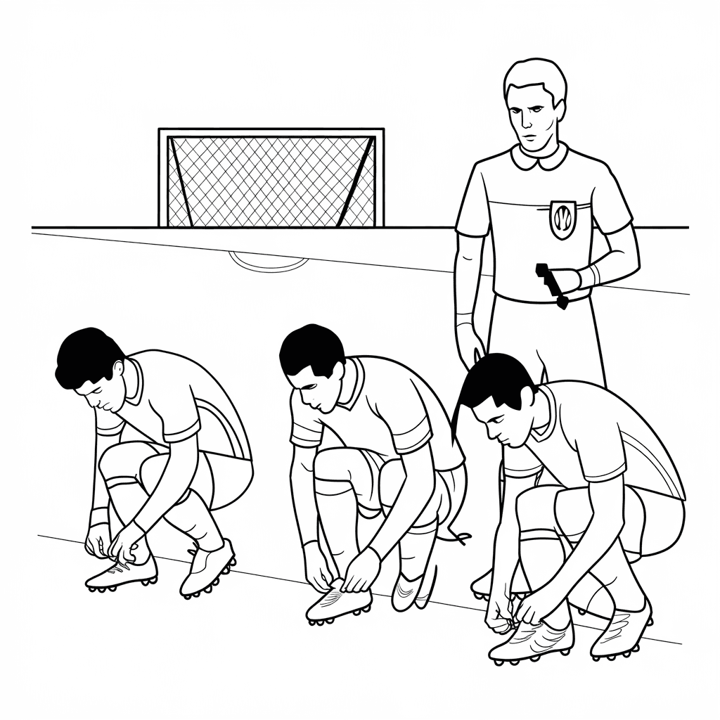 Ilustrasi pemain yang bersiap di pinggir lapangan, menunjukkan persiapan sebelum bermain.