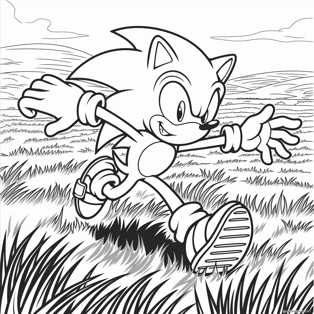 Gambar Sonic yang berlari di hamparan rumput hijau, menggambarkan kecepatan khasnya.
