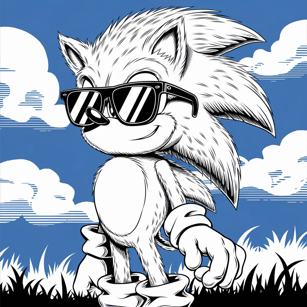 Ilustrasi Sonic yang memakai kacamata hitam, menambah kesan keren dan santai.