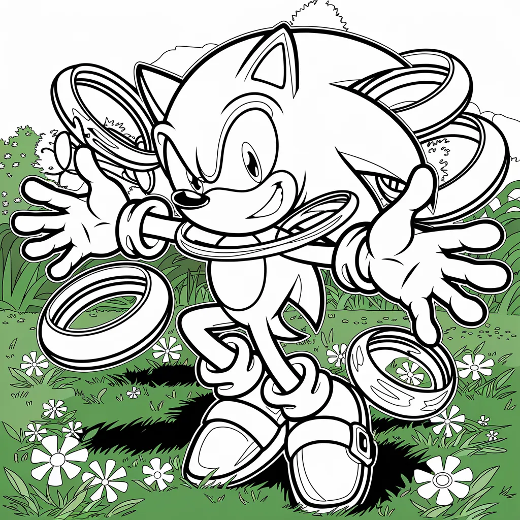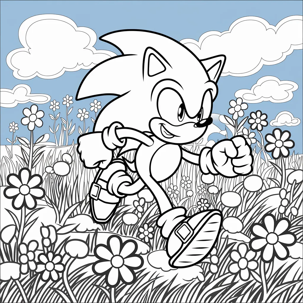 Ilustrasi Sonic di tengah taman bunga, memberi kesempatan untuk bermain dengan aneka warna cerah.