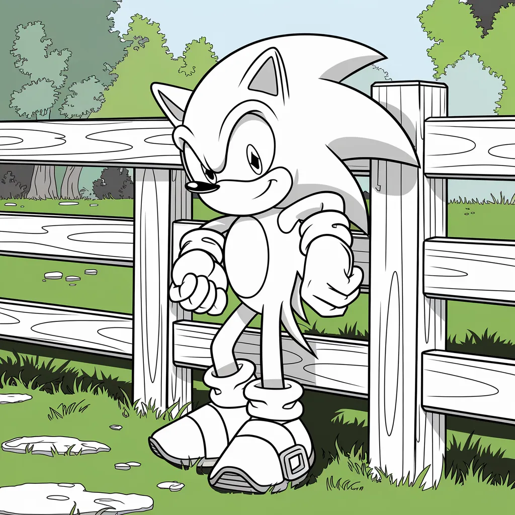 Gambar Sonic yang bersandar di pagar kayu, memberi nuansa pedesaan yang ramah.
